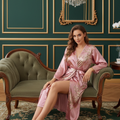 Women's Elegant Silk Robe Floral Print Loose Fit Long Sleeve Breathable Loungewear All-Season